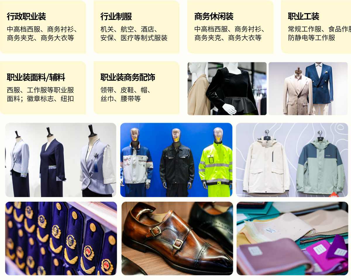 中高档西服、商务衬衫、商务夹克、商务大衣等