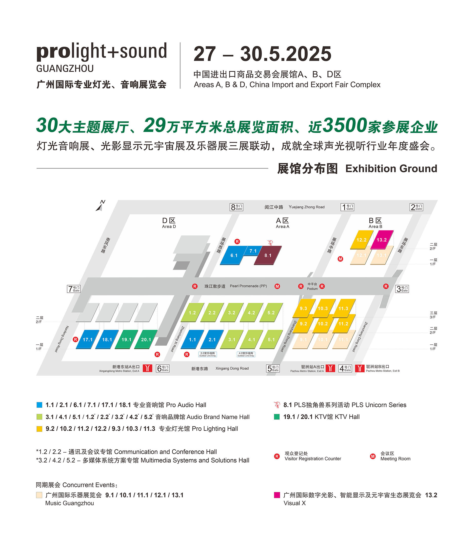 2025广州灯光音响展/第23届广州国际专业灯光、音响展览会)展馆分布图