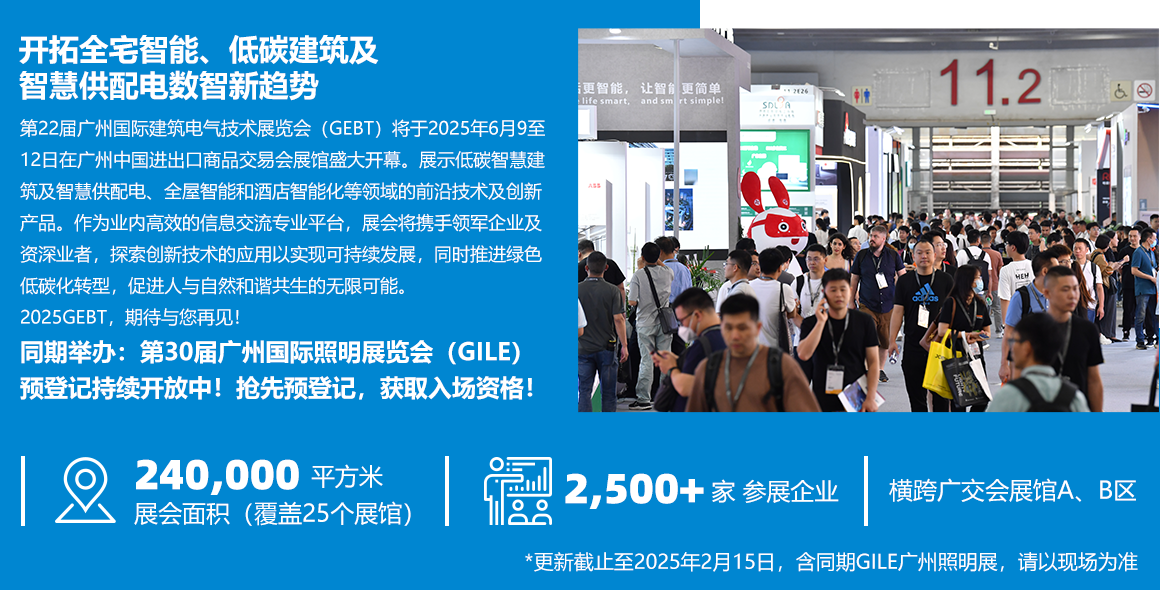 广州国际建筑电气技术展览会将于2025年6月9至12日在广州中国进出口商品交易会展馆举办。配合绿色建筑、全屋智能、智慧社区、智慧酒店等趋势,GEBT继续搭建高效的交流平台,促进业内信息互换,聚焦智慧技术,探讨技术融合及未来机遇,助力跨界合作。