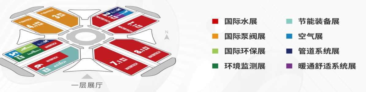 第十三届上海国际泵管阀展览会(简称:2025上海国际泵阀展)展馆分布图