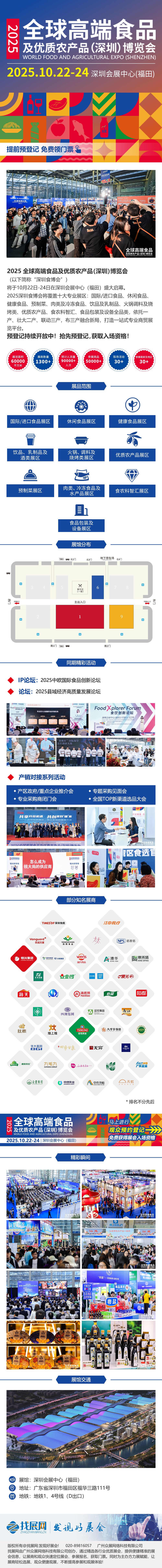 2025全球高端食品及优质农产品(深圳)博览会将于2025年10月22日-24日在深圳(福田)会展中心举办,共10大展品品类,辐射大湾区产业资源优势,深度链接供应商采购商,为企业搭建深港澳合作平台、国际食品安全交流平台、农业科技展示平台,农业产业现代化推广平台、国际食品贸易交易平台、餐饮及农业食品品牌推广平台。加强贸易往来,助推深圳食品产业的发展;助推深圳成为国际优质、高端食品食材集散中心,吸引全球食品及农业龙头企业落户深圳,推动招商引资;助推乡村振兴长久、可持续发展,助推深港澳食品和餐饮产业与会展协同发展。