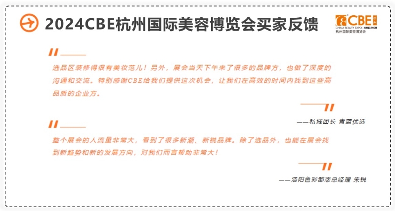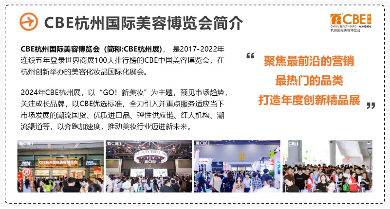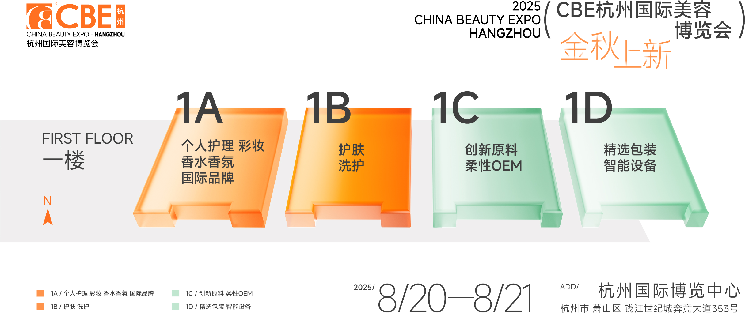 2025CBE杭州国际美容博览会将于2025年8月20-21日在杭州国际博览中心举办。本届展会,以“金秋上新”为主题,在行业下半年上新及采购季时节,以市场优选标准,全力引进全球20个国家及地区的700+家化妆品企业,包括中国新势力品牌、中国特色原料企业、弹性供应链、红人/机构、潮流零售新场景等新兴资源。