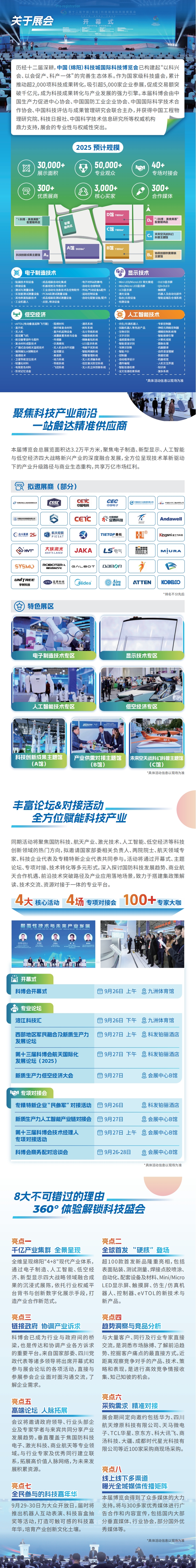 全维呈现绵阳"4+8"现代产业体系,通过电子制造、人工智能、低空经济、新型显示四大战略领域融合成果的沉浸式展陈,依托行业权威平台背书与创新数字化展示手段,打造产业合作新范式。