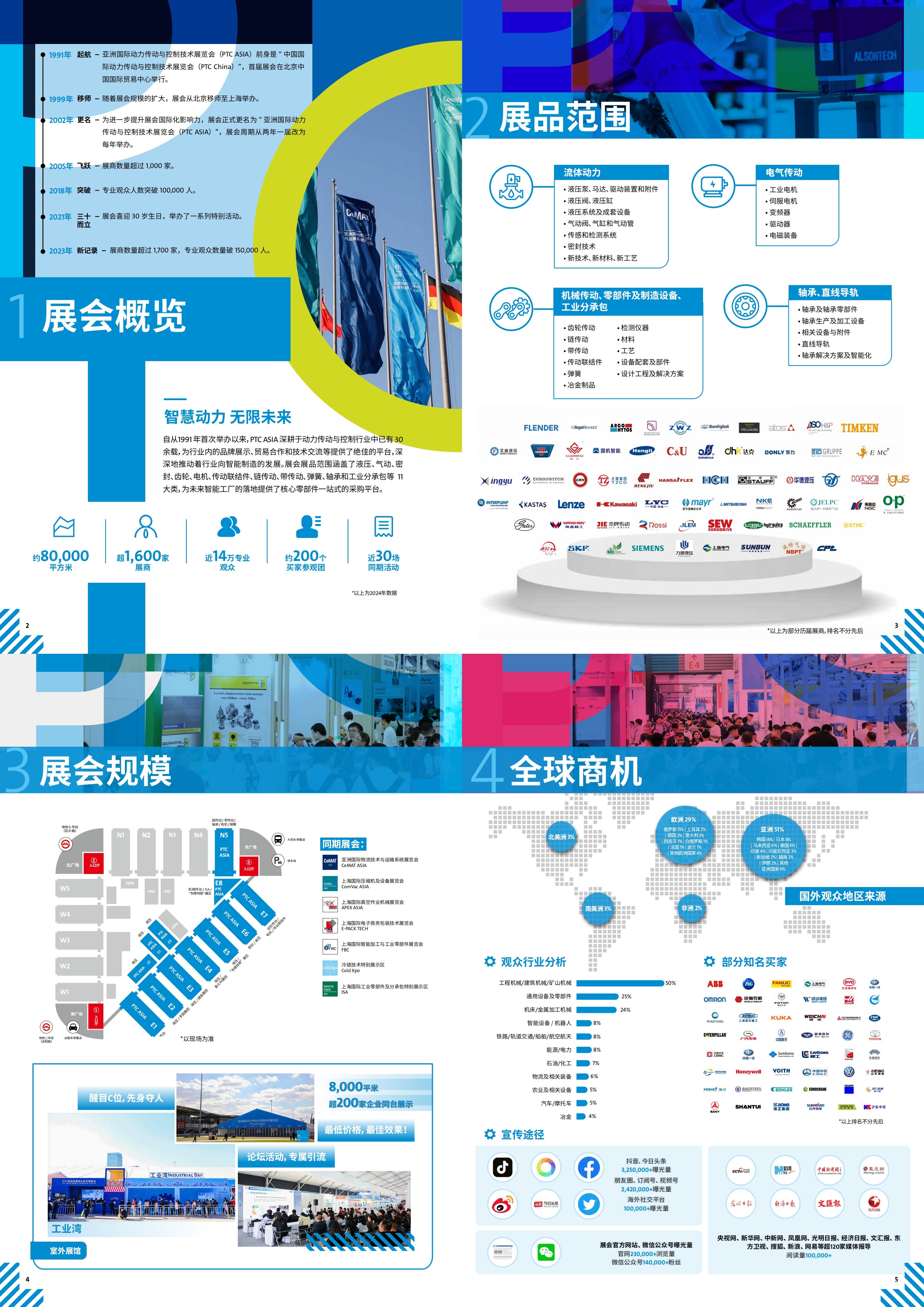 自从1991 年首次举办以来,PTC ASIA 深耕于动力传动与控制行业中已有30 余载,为行业内的品牌展示、贸易合作和技术交流等提供了绝佳的平台,深深地推动着行业向智能制造的发展。展会展品范围涵盖了液压、气动、密封、齿轮、电机、传动联结件、链传动、带传动、弹簧、轴承和工业分承包等11 大类,为未来智能工厂的落地提供了核心零部件一站式的采购平台。
