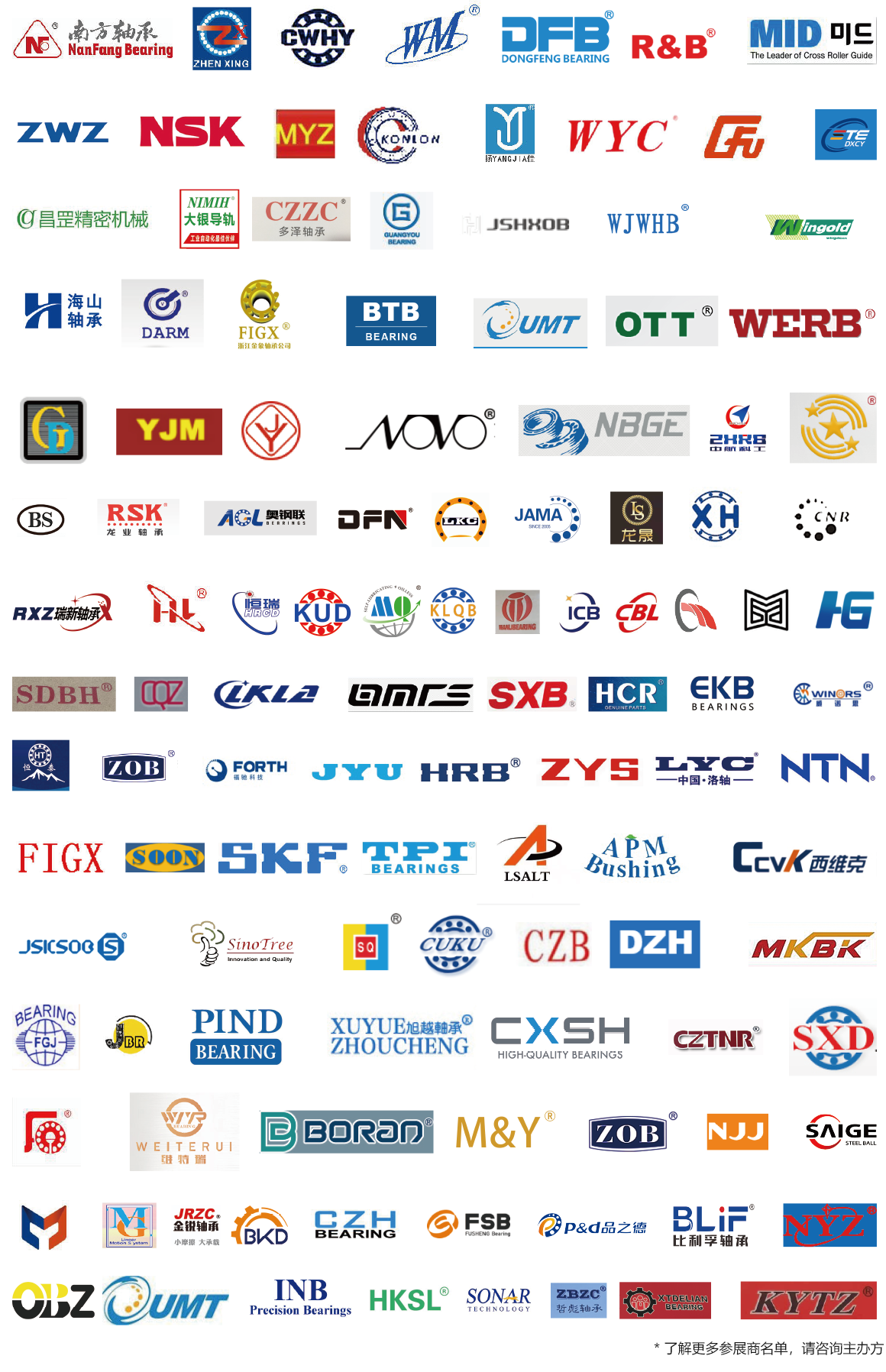 本届展会荟萃多元化轴承产品,集聚众多知名品牌与制造商。截止目前,已确认参展的品牌企业包括常州市吉贝尔轴承厂、临清环创轴承、常州锐阳机车配件、河北富兰特轴承、河北道名陶塑、临清市快特轴承、嘉善明琴无油轴承、浙江纽伦轴承、常州剀正斯轴承、上海郑升轴承、宁波名红佳轴承、瓦房店华杰轴承、合肥海视达智能科技、江普轴承、无锡杰勤机械、常州泉圣轴承、常州安邻轴承等。