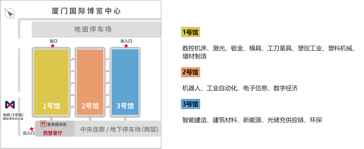 自驾:导航至厦门国际博览中心,展馆停车位充足,地下停车场可从西登录厅地下停车场1号进出口和东登录厅地下停车场6、7号进出口进入。