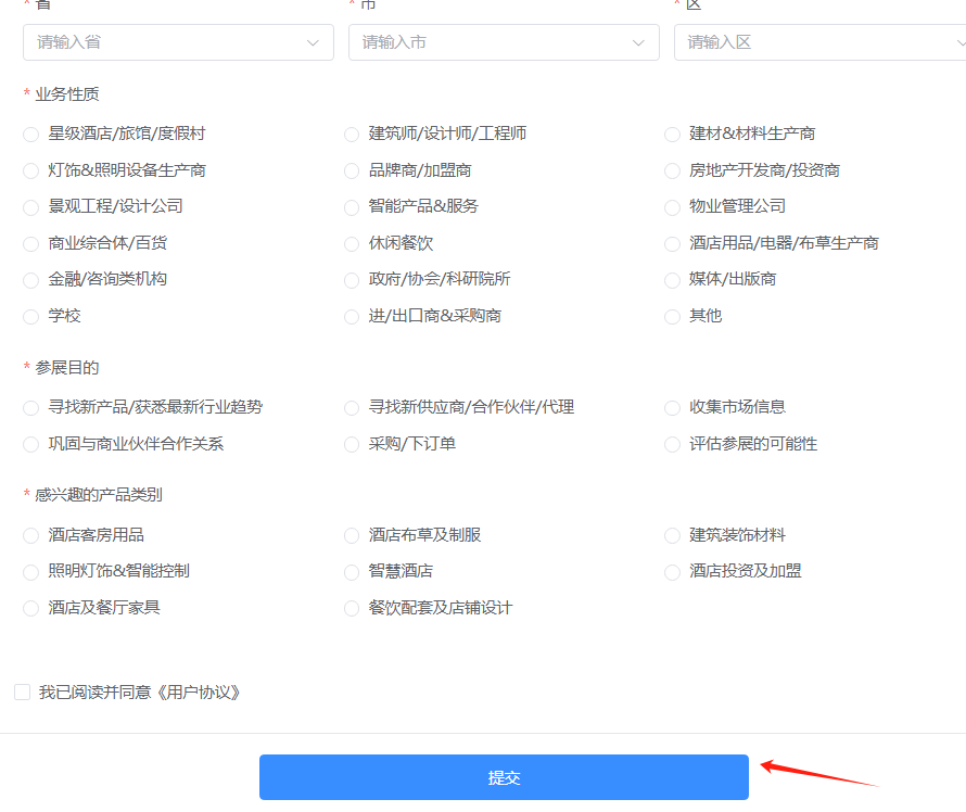 第二步:填写观众资料,点击“提交”即可领取免费2025成都酒店展门票。