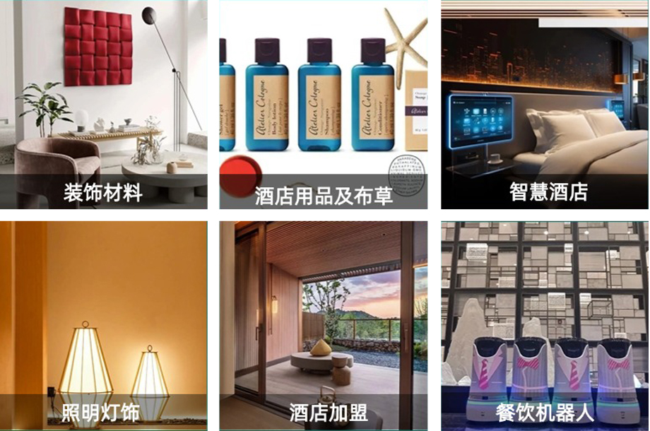 装饰材料、酒店用品及布草、智慧酒店、照明灯饰、酒店加盟、餐饮机器人