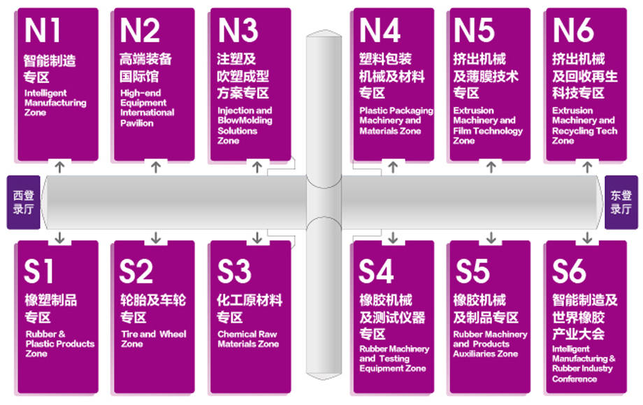 注塑/吹塑成型设备、挤出机械、回收再生科技、塑料包装机械、薄膜技术、复合印刷设备、橡胶机械、轮胎机械、测试仪器及辅助设备