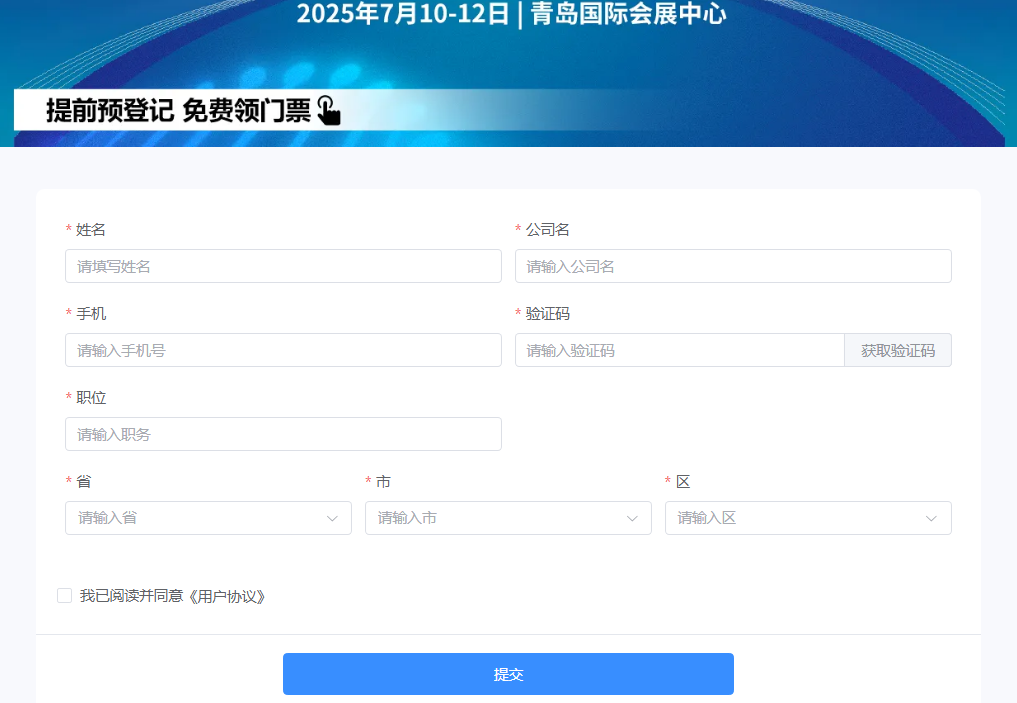第二步:一分钟快速填写观众信息,点击“提交”立马领取2025青岛医疗器械展(中国(青岛)国际医疗器械展览会)门票。