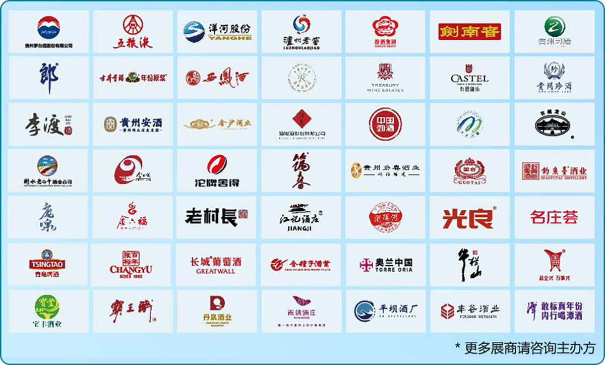 茅台、泸州老窖、剑南春、古井贡酒、珍酒、酒鬼酒、汾酒、庞泉、晋善晋美、吕梁山、国邨、金杏花、中孚、柳裕酒庄、太行山、天青瓷酒、高粱王、山西七星岳、山西杏花清香汾韵酒业、东杏酒业、大美青花、山西杏善酒、杏汾泉、山西汾香酒厂、山西老酒酒广、山西午城酿酒、堡子酒、山西老白千、山西汾酒坝等。