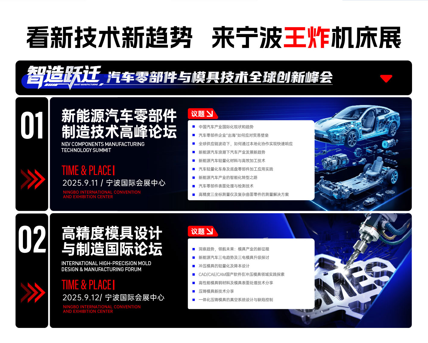 9月11-13日,2025华机宁波国际机床展将于宁波国际会展中心满馆举办。围绕“金属切削机床、金属成形机床、工业自动化及机器人、磨削工量具、机床附件及模具机”六大核心主题,2025华机宁波国际机床展精准匹配宁波本地产业需求,聚焦“模具制造、汽车零部件、小家电制造”三大重点产业应用,锚定液压传动、石油装备、螺杆制造、阀门制造等细分领域设备加工需求。