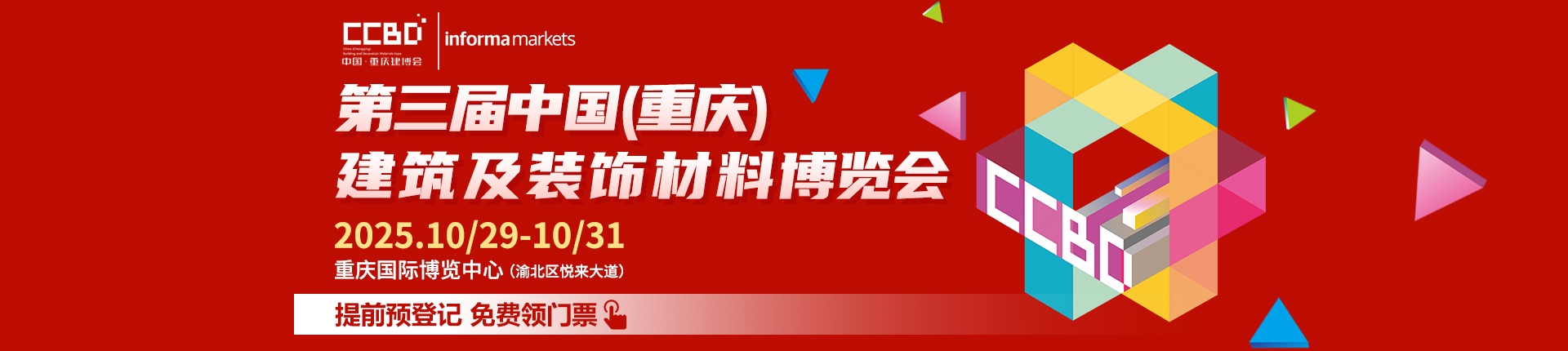 将于10月29日~10月31日在重庆国际博览中心举办的CCBD2025重庆建博会,本届展会规划展区40000平米,涵盖门窗、定制家居、顶墙地材、软装、卫浴、建筑新材料、暖通厨电等7大展区,共3个主题展馆,预计将有700+行业展商参展,50000+人次专业观众到场参观。由英富曼会展集团Informa Markets、中国建筑材料流通协会主办,英富曼天一展览(成都)有限公司承办。
