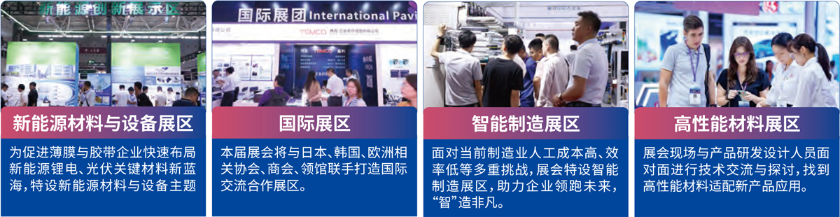关协会、商会及领馆,精心打造国际交流合作展区。汇聚全球先进功能性薄膜与胶带企业和前沿技术,集中展示国际领先的制造工艺与应用成果。