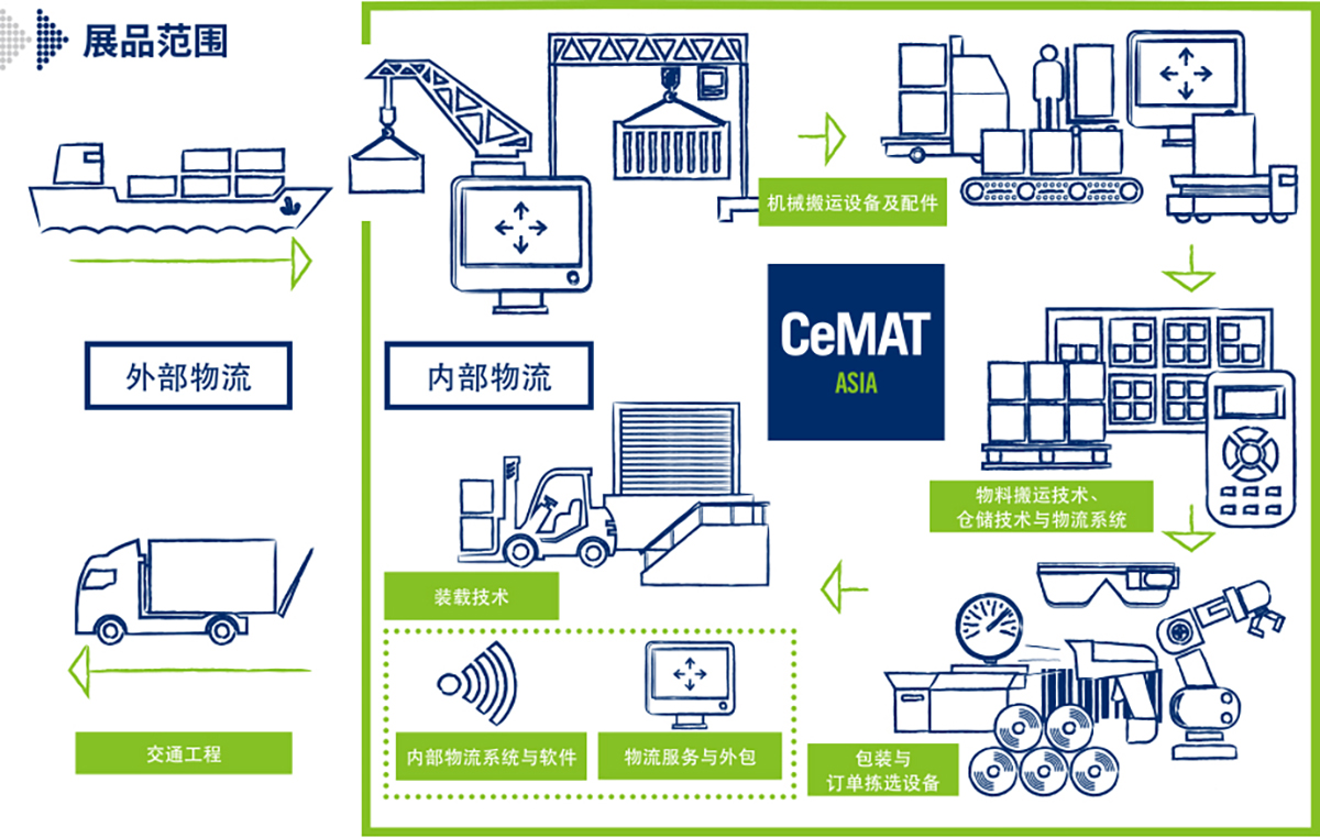 2025亚洲国际物流技术与运输系统展(CeMAT ASIA)深度覆盖物流系统集成与解决方案、机器视觉及工控产品、输送分拣设备、物流机器人与AGV、叉车及配件、包装设备及托盘周转箱、工业级无人驾驶、起重设备与脚轮等多个板块,全方位呈现物流技术智能化升级与绿色低碳转型的前沿趋势。