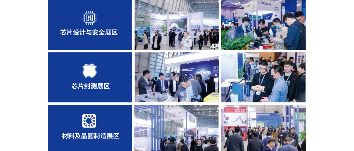 展示芯片设计工具、晶圆制造设备、封装测试服务、车规认证方案,覆盖从研发到量产的全流程支撑环节。