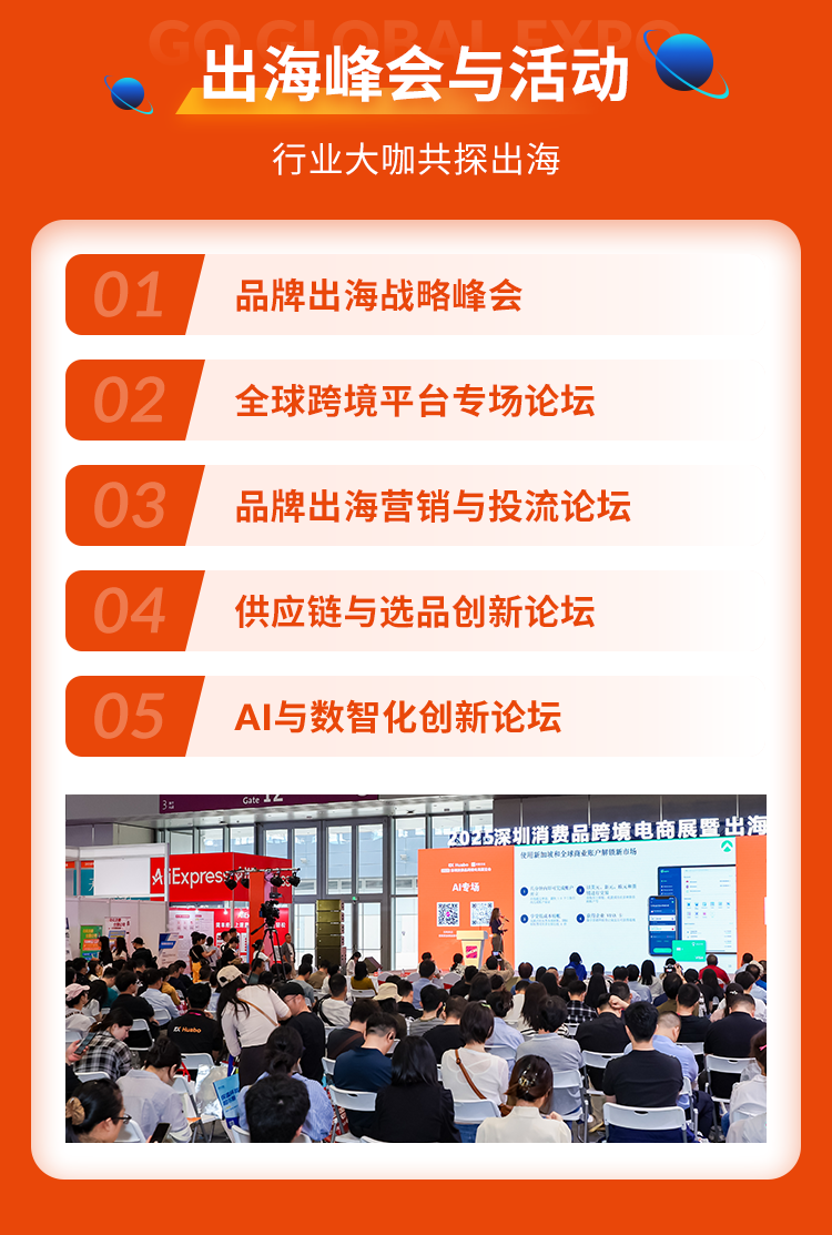 将和第33届中国(深圳)国际礼品及家居用品展览会、第11届深圳礼品、消费品包装及印刷展、第16届深圳国际移动电子展、2025特殊渠道宠物用品展同期举办的2025GGE出海博览会,将全面聚焦Q4电商生态在黑五、万圣节、圣诞节关键营销节点的内容转化与选品布局。10月20日-23日将在深圳国际会展中心1、3号馆隆重举办!