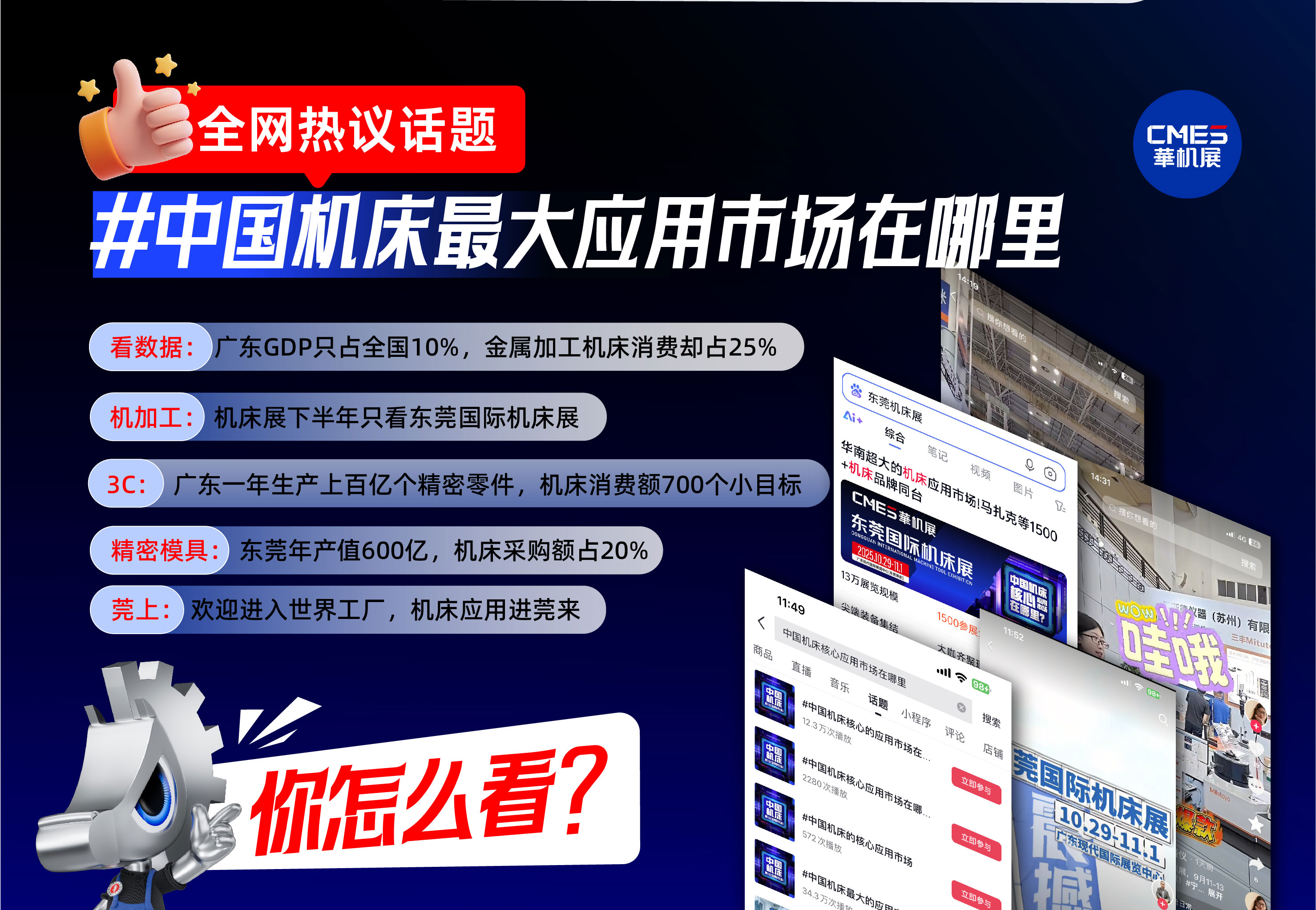 2025年10月29日至11月1日,第7届CMES华机展 | 东莞国际机床展将在广东现代国际展览中心(东莞厚街)举办。以 “应用聚焦,震撼华南” 为主题,汇聚全球机床与自动化领域力量,为这座金属切削机床产量居全国前列的制造业重镇,注入数智升级的新动能。