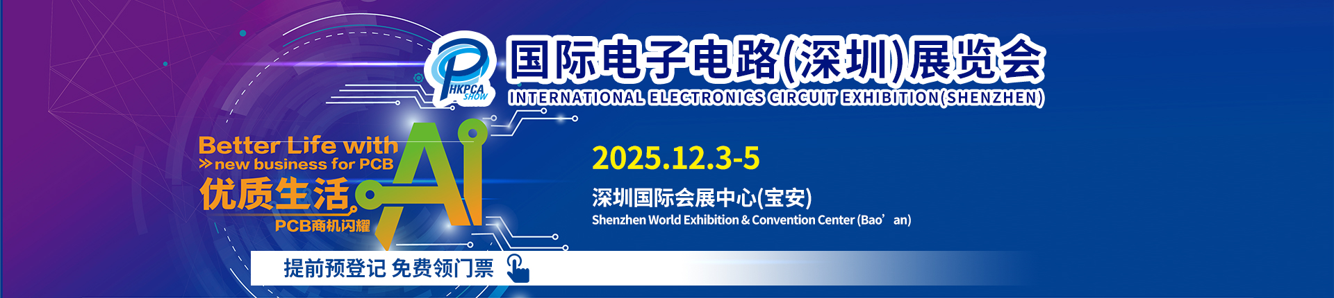 12月3-5日将于深圳国际会展中心(宝安) 5、6、7及8号馆盛大举办HKPCA SHOW 2025国际电子电路(深圳)展 。AI技术深度融入PCB产业,本届HKPCA SHOW 2025国际电子电路(深圳)展以“优质生活·AI—PCB商机闪耀”为主题。汇聚600余家知名企业,呈现AI技术在电子电路全链路中的创新实践——从智能设计、材料优化、制程管控到测试验证与供应链协同。