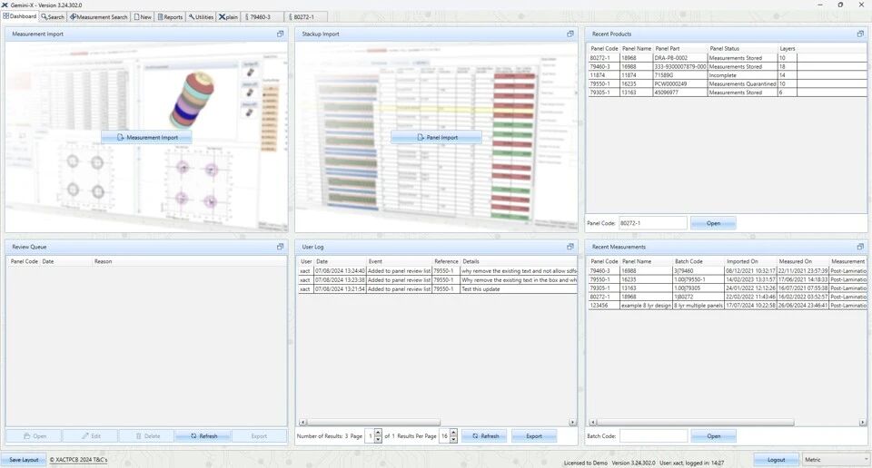 GX3 – XACT 系统的下一代产品,面向未来的客户端 / 服务器软件架构。支持多窗口显示界面以及客制化的用户特定布局、多记录登陆同时访问权限、实时界面查询视图、强大的可查询用户日志、基于内置逻辑的进阶产品新建和智能搜索功能、进阶的手动叠构编辑器,支持复制、镜像功能及更简单的钻孔和子叠构生成、可配置的叠构编辑器显示、增强的量测分析功能,融入更多新特性与功能、融入智能产品分堆功能的最佳钻孔优化、非线性涨缩测量分析功能,支持非线性钻孔和图形补偿、动态剔除和恢复每片板测量数据、扩展的 Xplain 功能与更高级图表显示、自定义用户类型管理器、实时自动化仪表盘、自动化邮件发送表格和图形、增强的 3D 虚拟切片功能,从板面任意位置查看的进阶图形化显示。